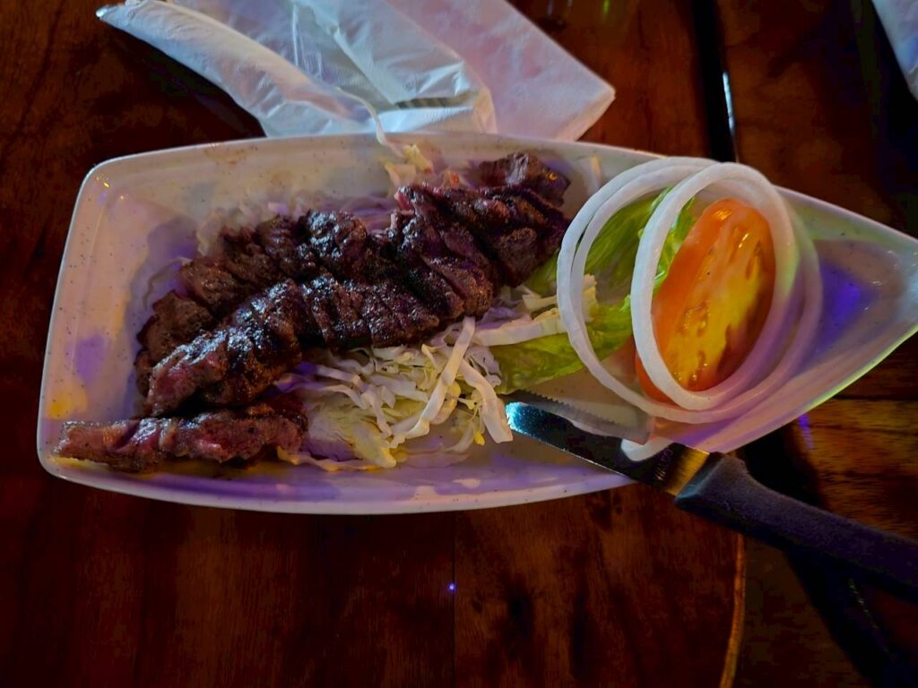 Sisは、こちらのステーキを注文しました。私も、1切れ食しましたが、ジューシーな柔らかい肉で、美味しいバーベキューテイストでした。