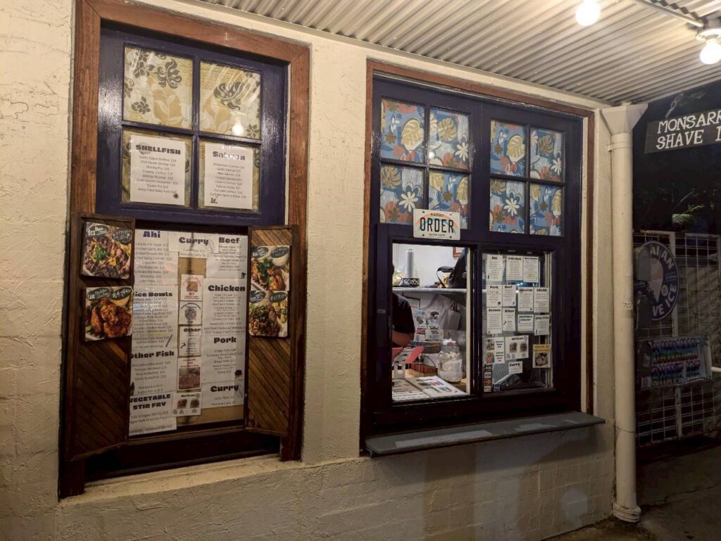 人気メニューは、魚市場から仕入れた新鮮なマグロを使用したガーリックアヒステーキ、ポン酢ソースなどの味付けが選べるリブアイステーキ、カリカリの食感が楽しめるハワイ定番料理モチコチキンの3つです。