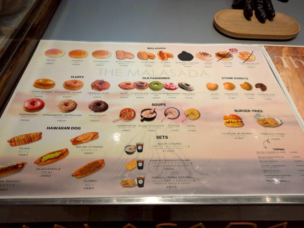 今回は、プレーンのマラサダを購入しましたが、下の写真のようにたくさんの種類がありました。